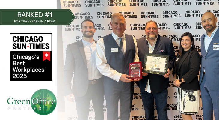 CHICAGO – The Chicago Sun-Times has recognized Green Office Partner as the #1 overall company on its Best Workplace list for the second consecutive year. The honor follows the company’s 2024 debut on the inaugural list, where it also earned the top spot.