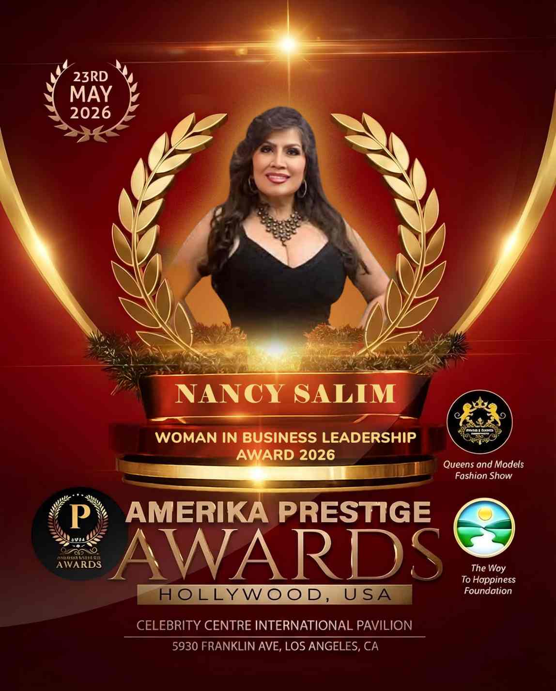 LOS ANGELES – Nancy Salim, accomplished entrepreneur, wellness specialist, and Head Professional Makeup Artist, will be honored with the Woman in Business Leadership Award 2026 at the 9th Edition Amerika Prestige Awards, scheduled for May 23, 2026, at the Celebrity Centre International Pavilion in Hollywood, California.