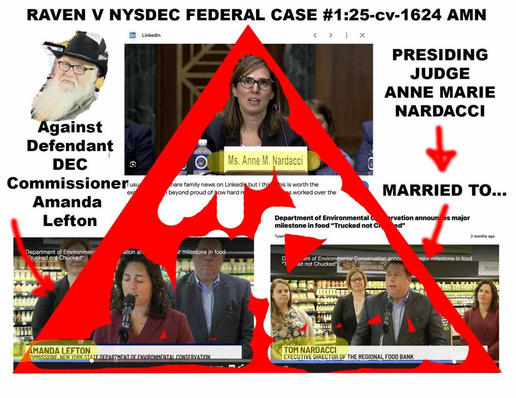 Perhaps most disturbing is what emerged during Raven’s follow-up investigation: just eight weeks before Judge Nardacci was assigned to the case, her husband, Tom Nardacci, appeared publicly alongside one of the named defendants—DEC Commissioner Amanda Lefton—on a televised panel. Despite this obvious conflict of interest and the appearance of compromised impartiality, Judge Nardacci made no disclosure and proceeded to issue rulings that clearly advantaged the DEC.