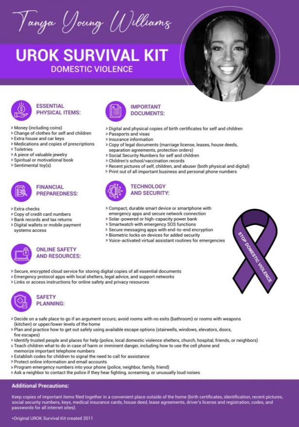 Tanya Young Williams, who was recently ordained as Rev. Dr. Tanya Young Williams, said, “The UROK Survival Kit 2025 is not merely a resource but a life line to those who seek safety and support. By using the updated preparedness and safety tools, victims of Domestic Violence can gain power in a often time “powerless” relational dynamic.”