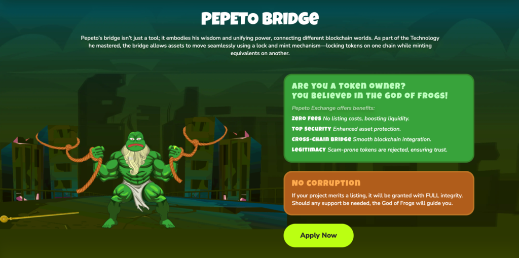 • A planned Pepeto Exchange, positioned around verified meme-utility listings